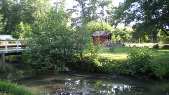 Idéale pour un couple avec superbe vue sur la rivière et la piscine, douche et toilettes séparées